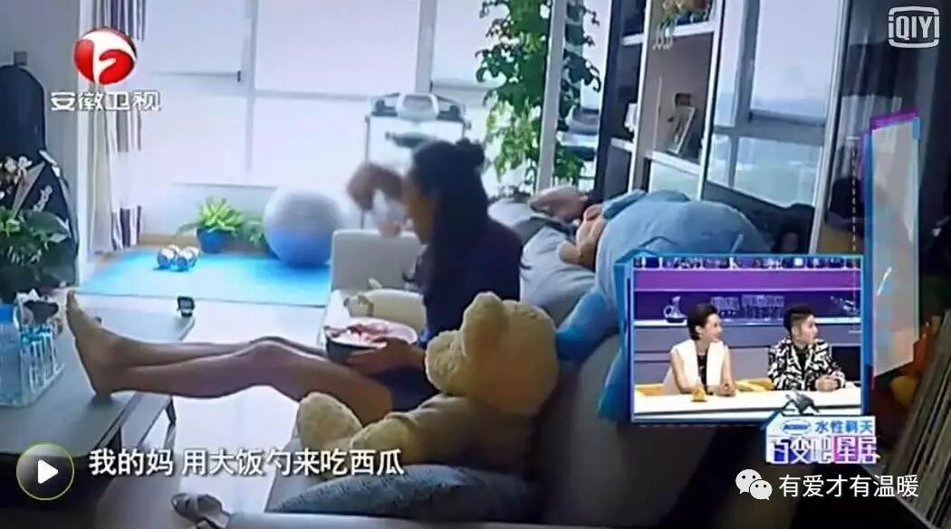 進客廳后,她又去冰箱拿了西瓜,一屁股坐在沙發上,雙腳自然地搭在矮茶幾上,用大飯勺吃完了半個西瓜。
